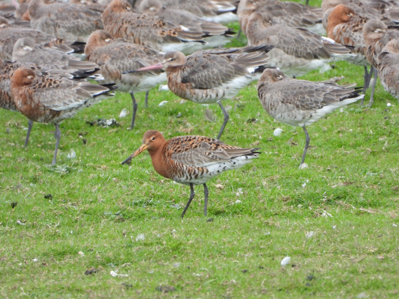 These Black-tailed Godwits were busy feeding in a damp field next to