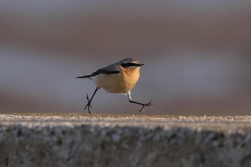 Wheatear walking along the top of the sea defence, Hoylake, March 21st