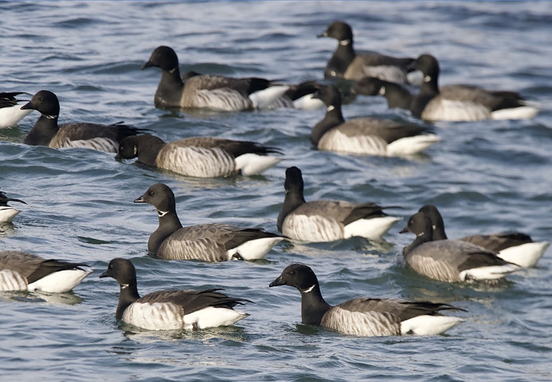 Brent Geese (note dark-bellied left of centre) on West Kirby Marine Lake, January 14th © Steve Williams