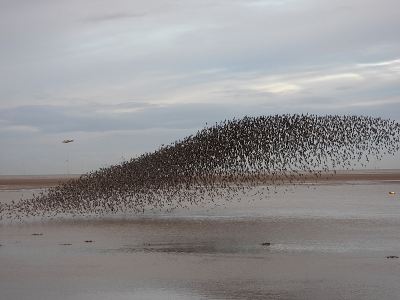 Big Knot flock on rising tide, Meols, December 5th © Richard Smith