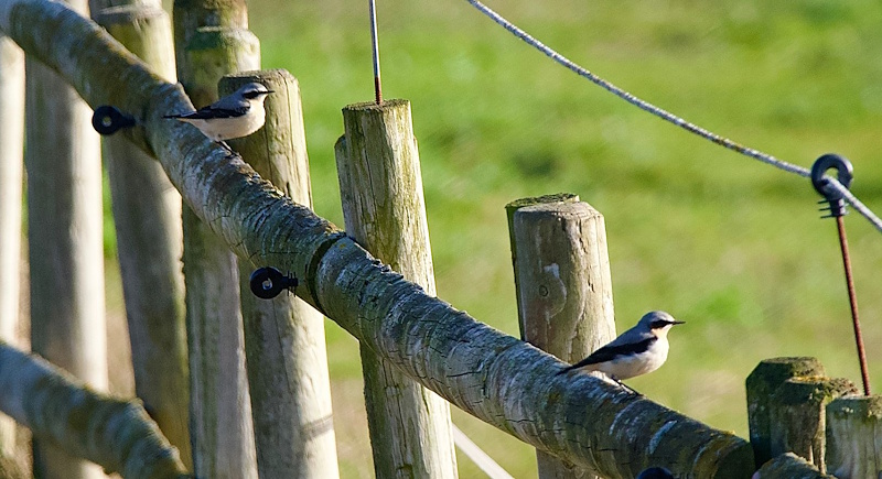 Wheatears in 'Hoopoe Hollow' paddock, Meols, March 14th © Steve Williams