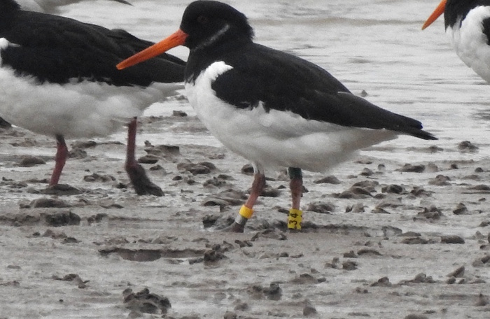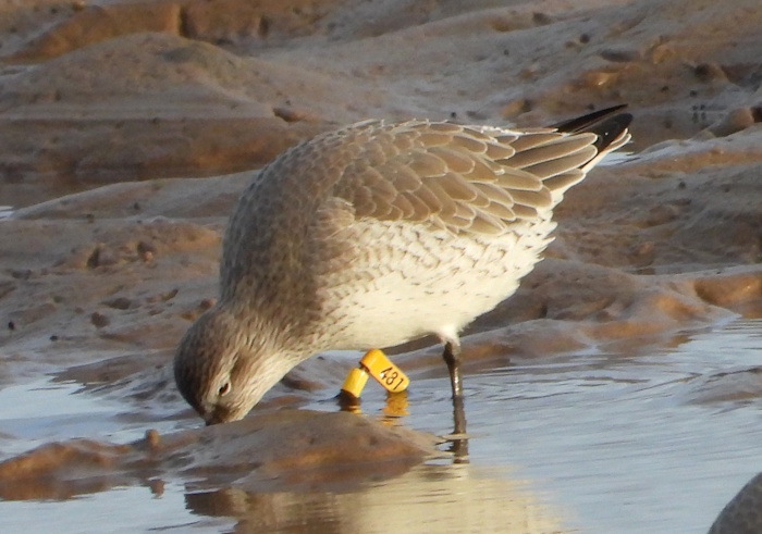 One of over 500 caught and ringed in Iceland in May 2025 - we've already seen ten of these newly flagged Knots here on the Dee this winter.
