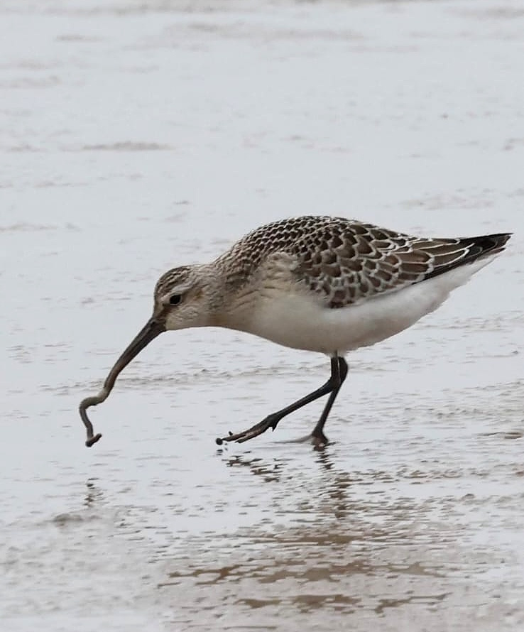 1 Great Skua on shore before high tide then flew west, 6 Curlew Sandpiper over high tide -