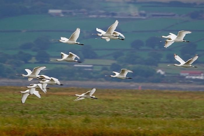 Spoonbills in flight, Parkgate, September 18th © John Crook